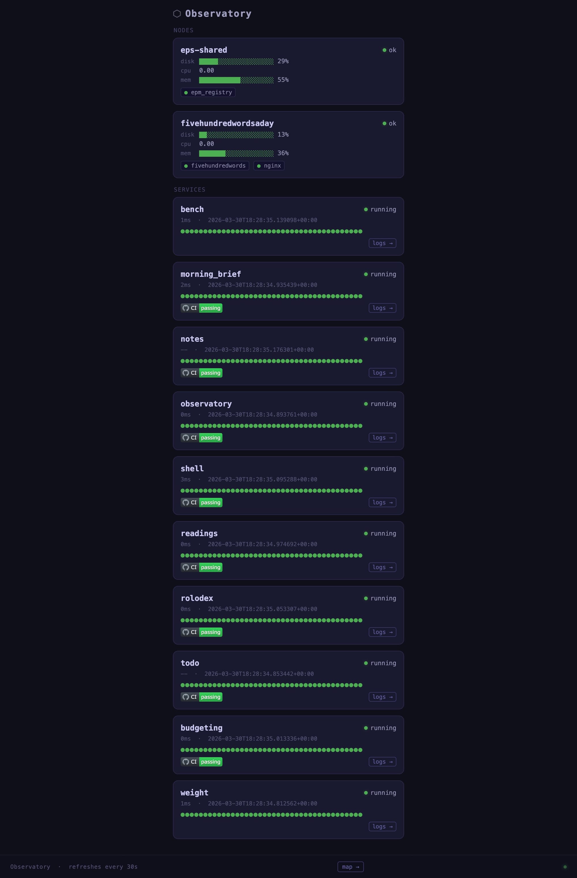 All of these apps are managed by observatory, which looks like this: